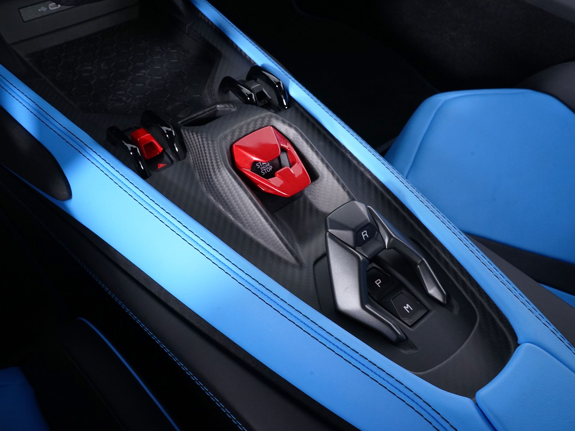 - Console insert material Corsa-Tex leather and simulated suede console insert