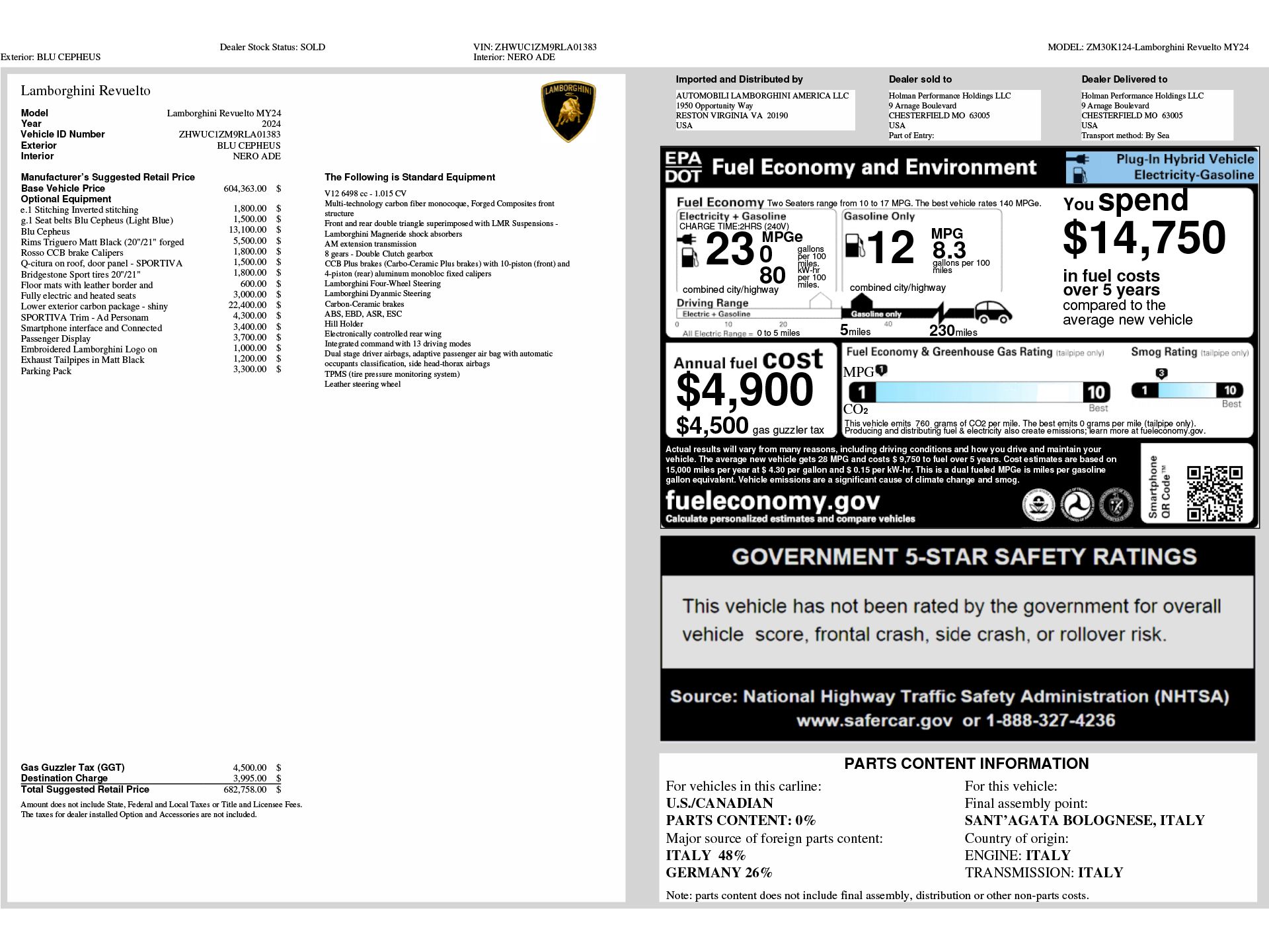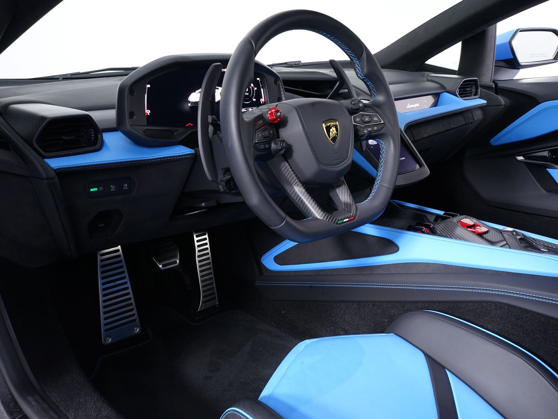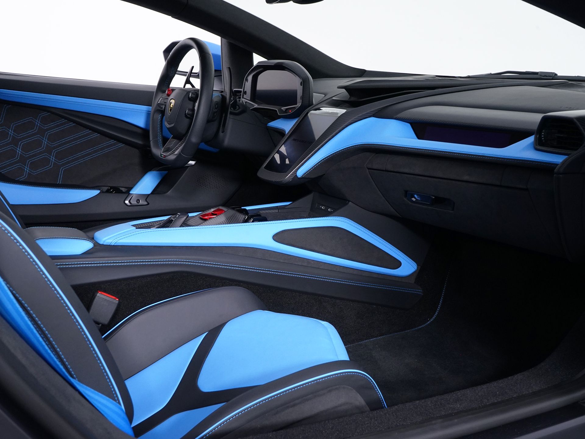 Blu Cepheus Metallic 2024 Lamborghini Revuelto AWD 8 Speed Dual Clutch V12 Adaptive suspension, Automatic temperature control, Electronic Stability Control, Exterior Parking Camera Rear, Lane Departure Warning System, Navigation System, Parking Pack, Passenger Display, Remote keyless entry, Rosso CCB Brake Calipers, Sportiva Leather Seat Trim, Wheels: 20" Fr & 21" Rr Triguero Matt Black.Recent Arrival!