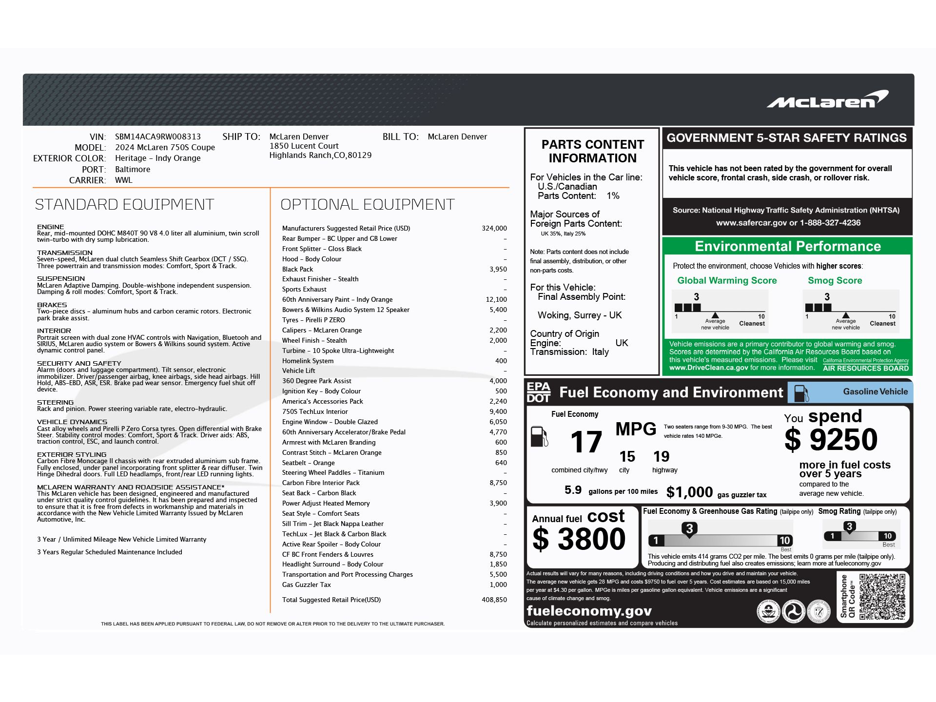 Indy Orange 60th Anniversary Triple Crown 2024 McLaren 750S RWD 7-Speed Automatic V8 Apple CarPlay, Automatic temperature control, Black Pack, Brake assist, Carbon Black Power Adjust Heated Memory Comfort Seats, Carbon Fiber Racing Seats, Electronic Stability Control, Exterior Parking Camera Rear, Full Alcantara Seat Trim, Full Alcantara w/TechLux Seat Trim, Navigation System, Radio: Bowers & Wilkins 12-Speaker Audio System.Recent Arrival!