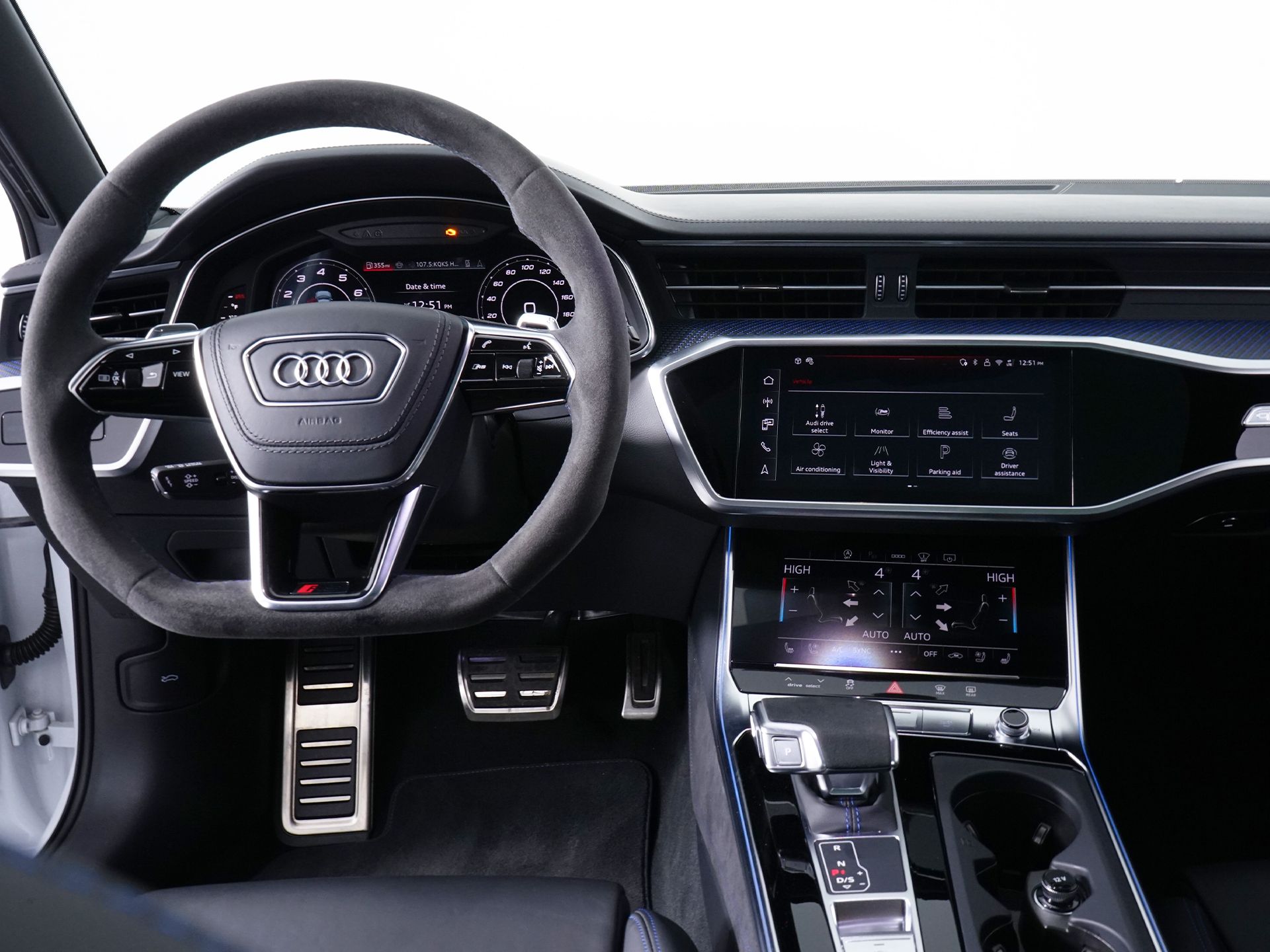 Glacier White Metallic 2025 Audi RS 6 Avant performance 4.0T quattro quattro 8-Speed Automatic with Tiptronic 4.0L V8 Turbocharged DOHC 32V LEV3-ULEV125 621hp 16 Speakers, Adaptive Cruise Assist with Lane Guidance, Adaptive suspension, Alcantara Steering Wheel, Shifter and Center Console, Audi Side Assist with Pre Sense Rear, Auto-leveling suspension, Automatic temperature control, Bang & Olufsen Advanced 3D Sound System with 3D Sound, Black Exterior Mirror Housings, Black Exterior Trim, Black Optic Package, Black Roof Rails, Blue Contrast Stitching, Blue RS Design Package Plus, Blue Seat Belts, Brake assist, Carbon Twill Structure Inlays with Blue Accent, Driver Assistance Package, Electronic Stability Control, Executive Package, Exterior Parking Camera Rear, Head-Up Display, Heated front seats, Heated Rear Seats, Heated steering wheel, Intersection Assist, Leather Package, Navigation system: Audi MMI Navigation plus with Touch Response, Power Liftgate, Power moonroof, Power Soft-Closing Doors, Remote keyless entry, Remote Park Assist Plus, RS Logo Floor Mats with Blue Contrast Stitching, Split folding rear seat, Valcona Leather Seat Trim, Wheels: 22" Matte Gray Finish 5-Y-Spoke Design.Recent Arrival!